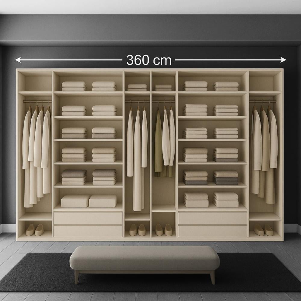 دولاب ملابس مودرن 8 أبواب مفصلية | عرض 360 سم × ارتفاع 260 سم × عمق 60 سم | خشب شيبورد اسباني | توصيل و تركيب مجانا جدة و مكة | ضمان 10 سنوات